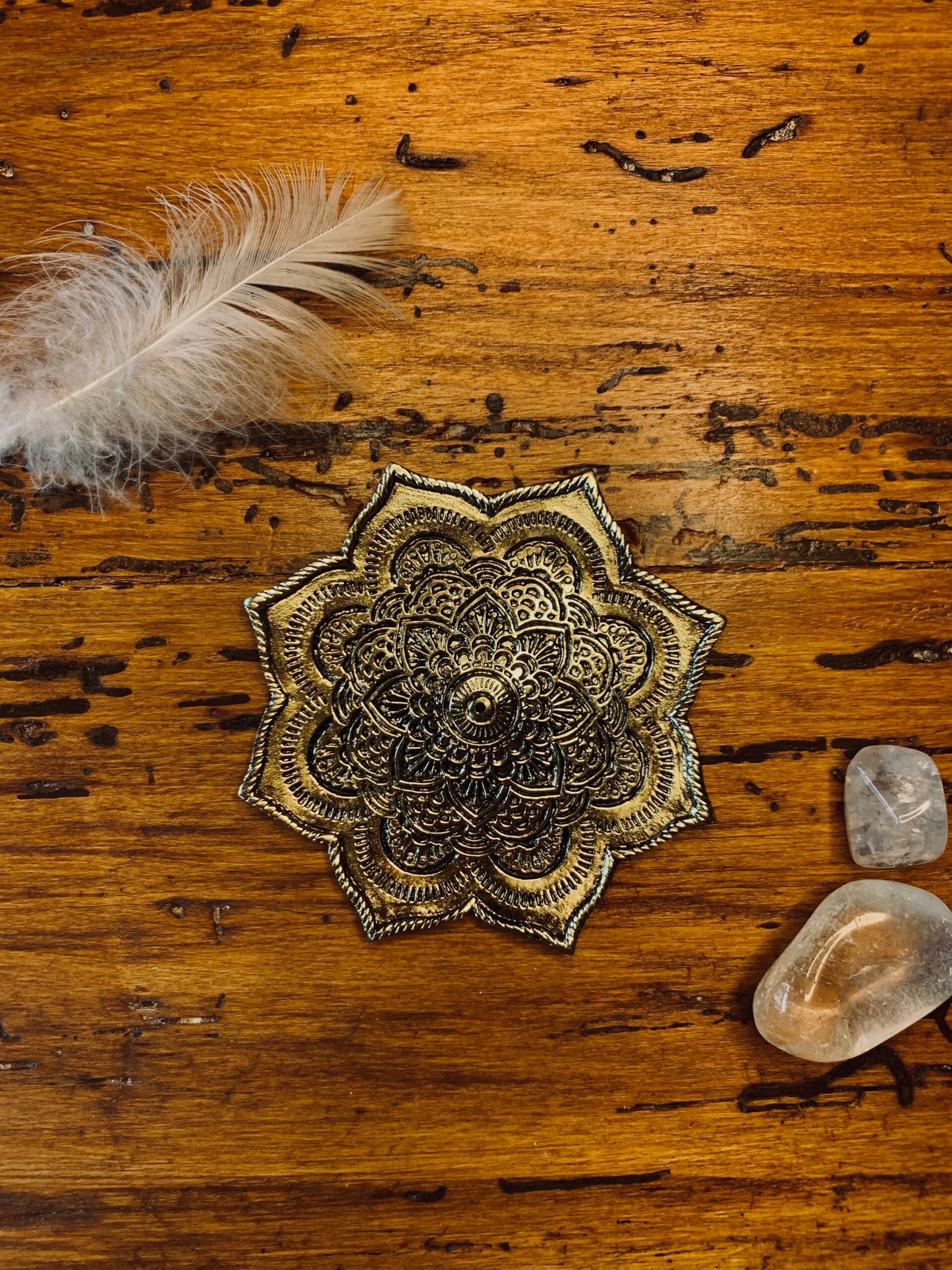 Porte-encens en métal pour bâtonnets et cônes, peut aussi servi pour rechargement de vos pierres .
